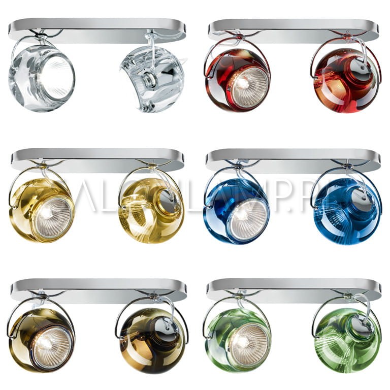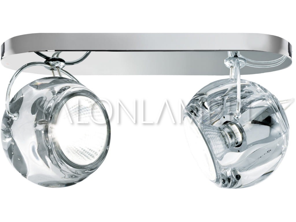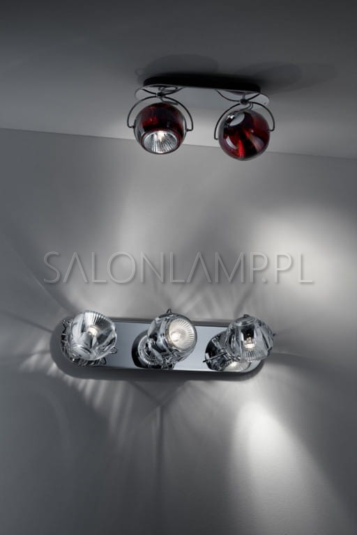 Przezroczyste kule wykonane z grubego, 24% kryształu mocowane za pomocą chromowanego uchwytu, który umożliwia regulację w dowolnym kierunku. Inspiracja kolekcji wywiedziona z koncepcji atomu. Zastosowana żarówka halogenowa daje jasne, skupione światło. Jednocześnie jej blask lekko przenika przez szklaną powierzchnię lampy, co daje efekt wewnętrznego żaru.