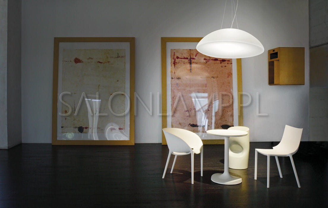 Biały klosz w kształcie kielicha z wklęsłą dolną powierzchnią. Wykonany z białego szkła Murano doskonale rozprasza światło.