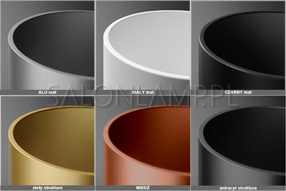 Oprawa występuje w kolorach: biały struktura, czarny struktura, miedziany, szary, złoty struktura.