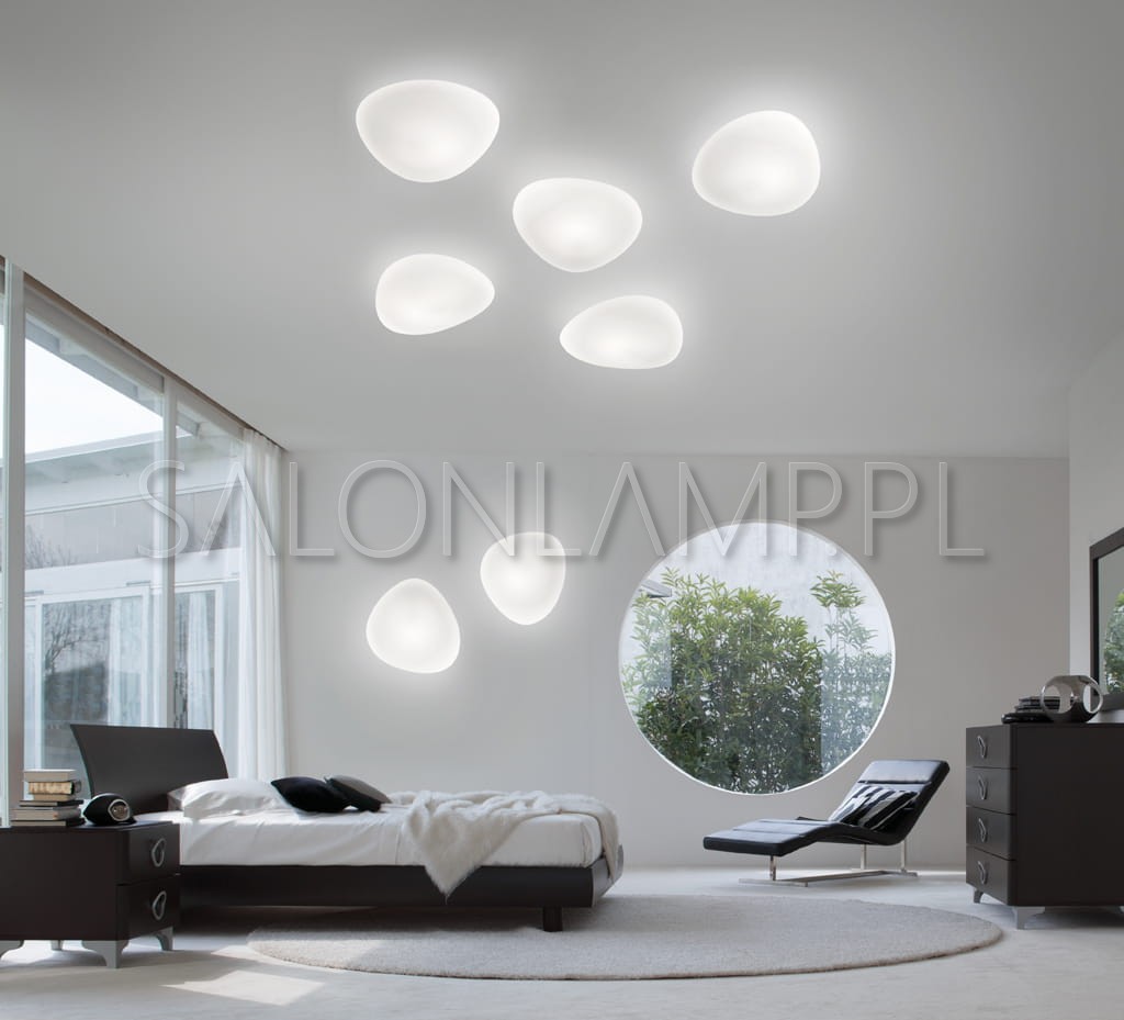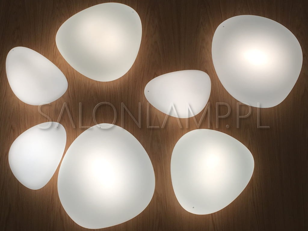 Lampa sufitowa lub kinkiet wykonana ze szkła Murano. Nowość firmy Vistosi, lampa o nieregularnym kształcie - udana próba imitacji rzecznych otoczaków, podjęta przez mistrzów szklarskich.