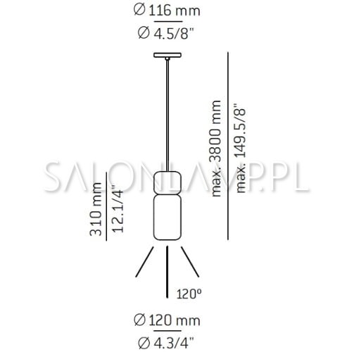 Lampa wisząca, Wymiary - 12 x 31 x 380 cm, Moc - 10W, Źródło - moduł LED CRI80 2700K 850lm.