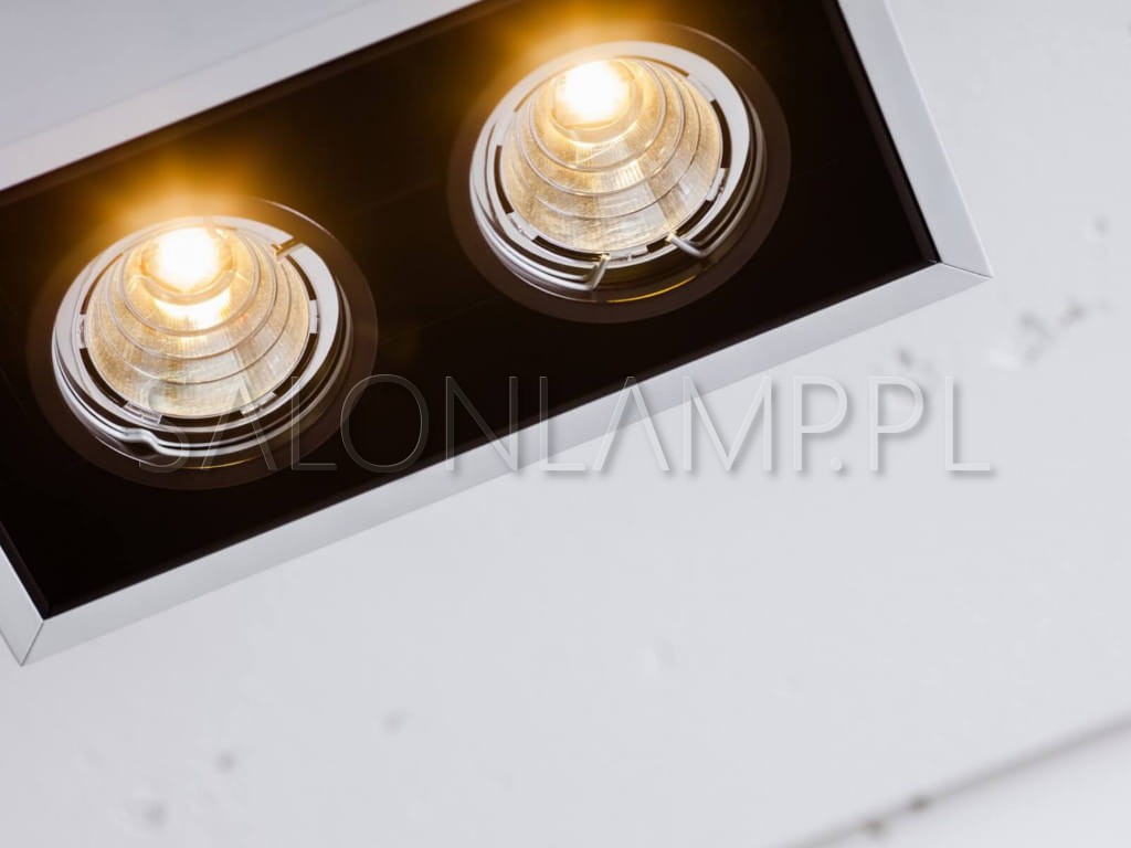 Lampa sufitowa, lakierowane aluminium, dostępne kolory alu, biały, czarny. Wymiary - 18,4 x 11 x 12 cm, Moc - 2x6,5W 2x600lm, Źródło - moduł LED, CRI/Temp. barwowa 930 i 940.
