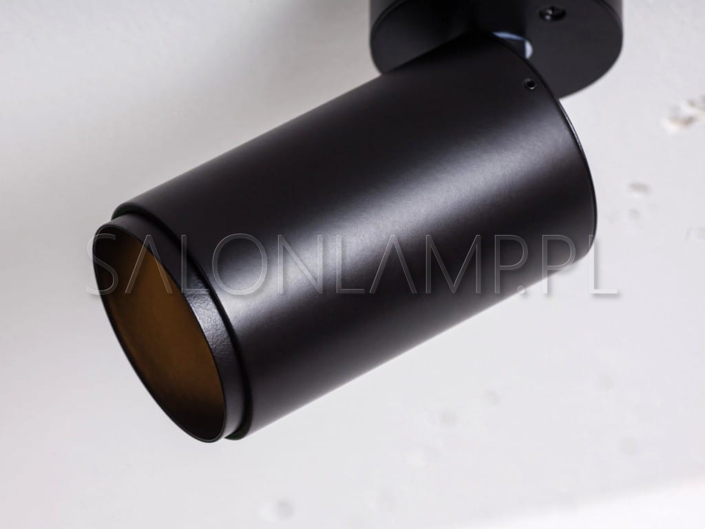 Oprawa sufitowa w formie walca z cofniętym do wewnątrz źródłem światła z możliwością ustawienia kąta padania światła do 65 stopni, walec obraca się wokół własnej osi do 350 stopni.