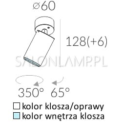 Lampa sufitowa, lakierowane aluminium, dostępne różne kolory. Wymiary - 6 x 13,4 cm, Moc - 1x50W, Źródło - halogen GU10 230V (możliwość zastosowania żarówki LED).
